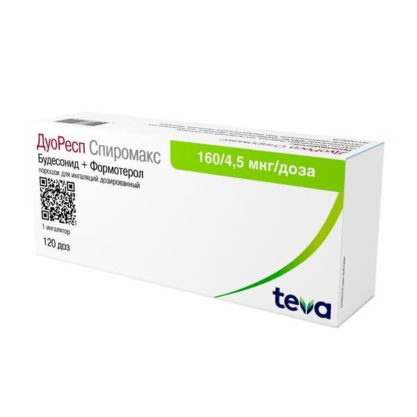 Препарат ДуоРесп Спиромакс содержит формотерол и будесонид, которые имеют разные механизмы действия и проявляют аддитивный эффект в отношении снижения частоты обострений бронхиальной астмы и ХОБЛ.